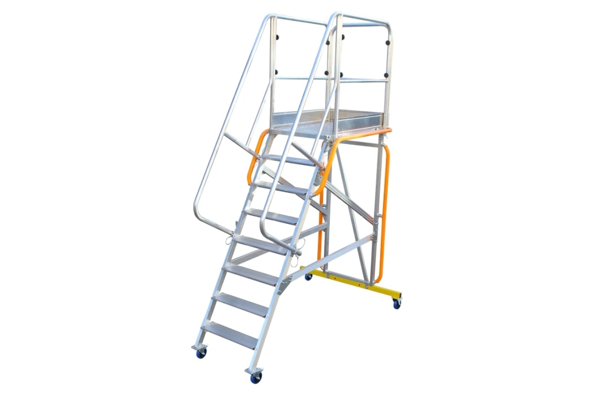 Удобная рабочая площадка из рифленого листового алюминия с ограждениями - безопасная работа