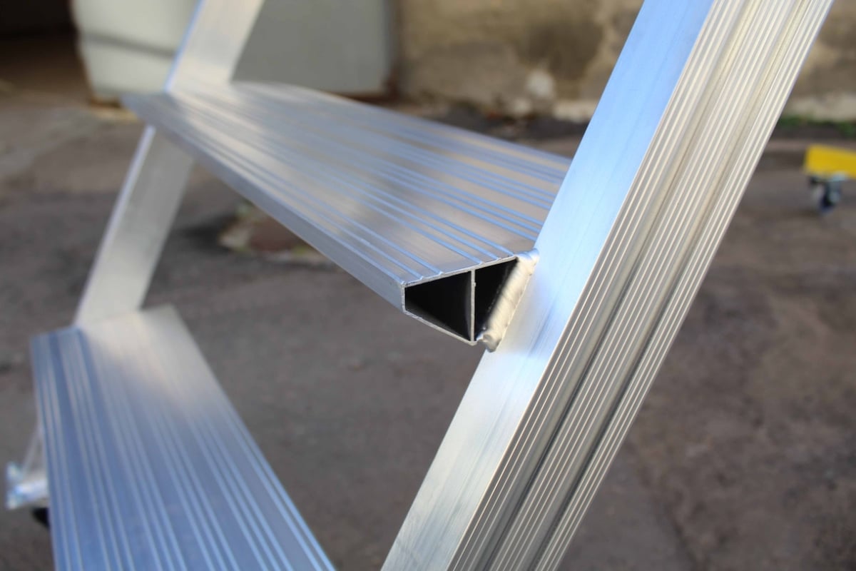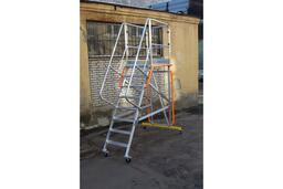 Основание лестницы и траверса оборудованы колесами диаметром 125 мм с фиксаторами - простота перемещения