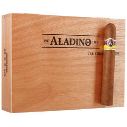A refined smoke, this medium-strength cigar delivers notes of cedar, almonds and spice. It is a Honduran puro made from 100% Corojo tobacco. This savory blend creates a smooth traditional smoke. The Aladino Gordo is handmade in Honduras.