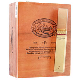 The Padron 1964 Anniversary Presidente Maduro is part of the esteemed brand's flagship 1964 Anniversary line, offering a perfect balance of superb quality and utmost value. This dark and leathery Nicaraguan puro is simply exquisite, with a texture that is 100% exclusively Padron. Delivering a rich, full-bodied profile containing notes of cocoa, earth, and nutmeg, this toro has a sweet cinnamon finish with an ideal pinch of pepper. An extraordinary smoke that is mandatory for every humidor. Individually packaged in a square aluminum tube for maximum protection and freshness.
