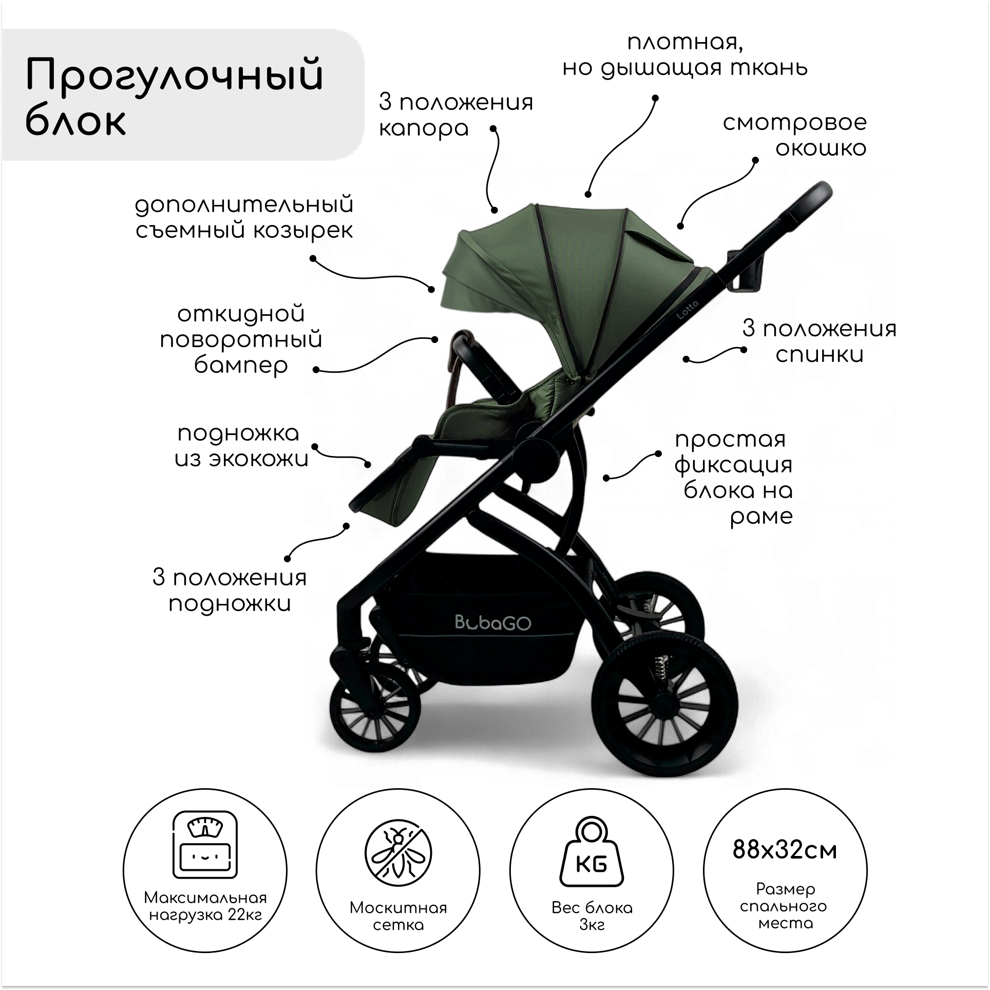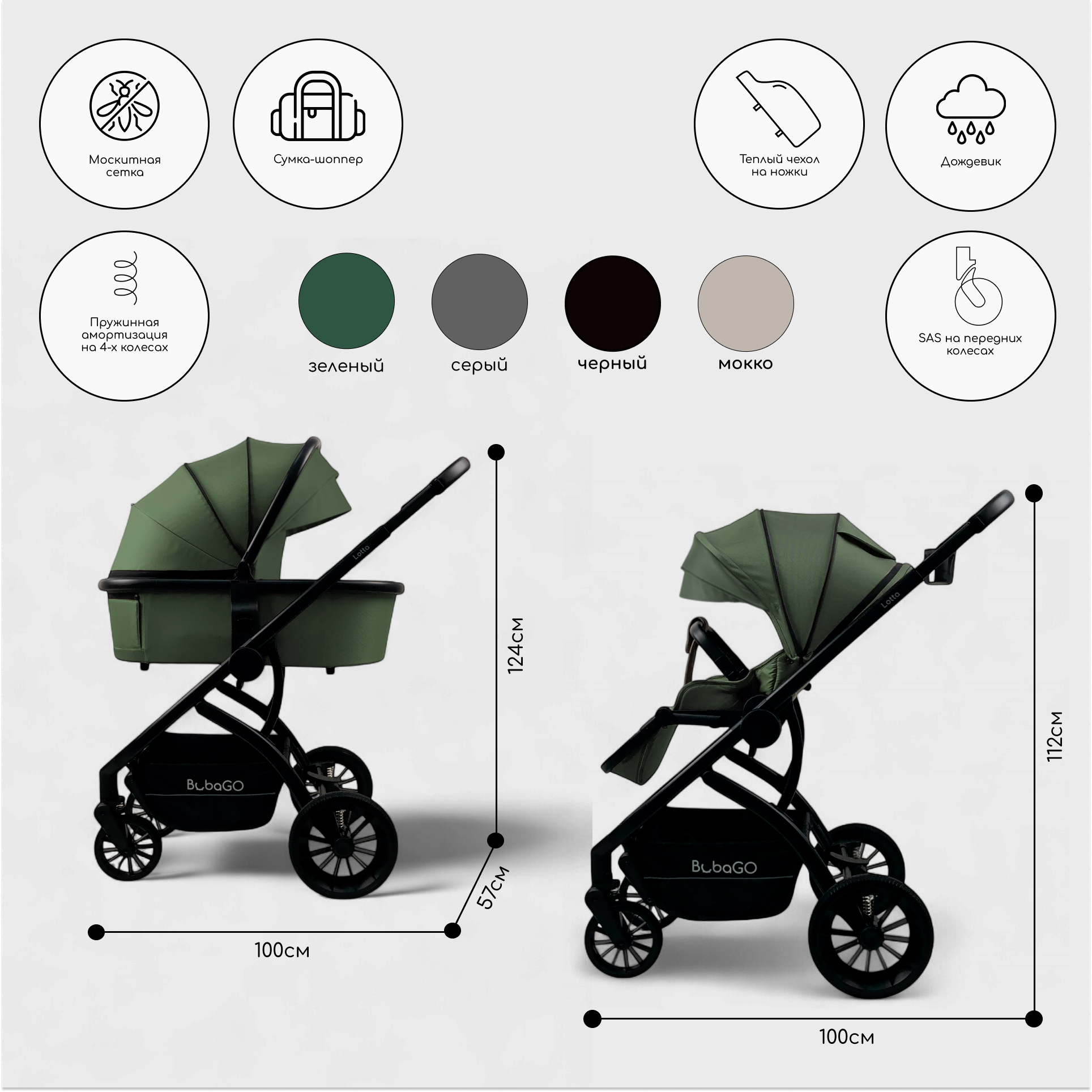 Детская универсальная коляска Bubago Lotta 3 в 1 / BG 150-4 (зеленый)