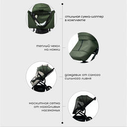 • Дополнительные элементы чехол для ног, подстаканник, москитная сетка, дождевик, вкладыш (ортопедический для автолюльки), сумка