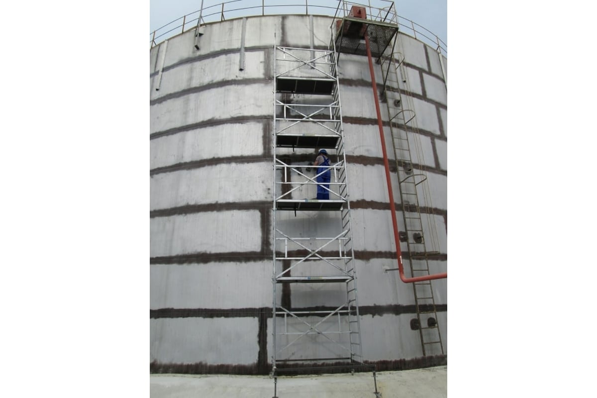 Вышка собирается из вертикальных рам. Рамы стыкуются между собой и фиксируются крепежными скобами. Все ступени рам выполнены из рифленого профиля. Используются диагональные и горизонтальные связи (стяжки).