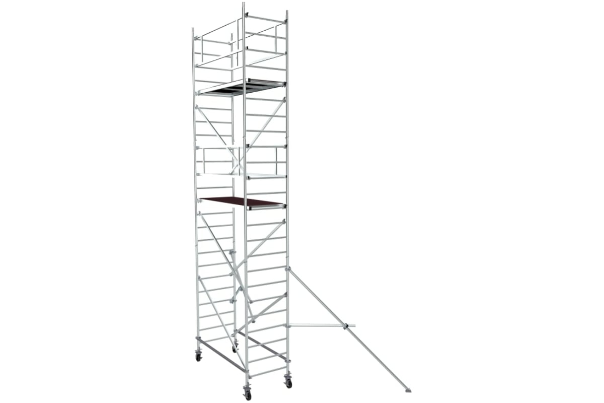 Модульная алюминиевая вышка MEGAL ВМА 700/7 100707 служит для подъема и организации рабочего места на высоте при выполнении строительно-монтажных, ремонтных и прочих работ.
