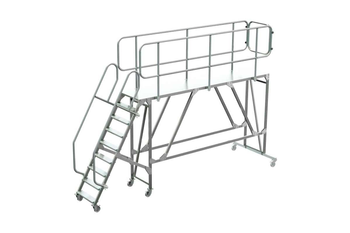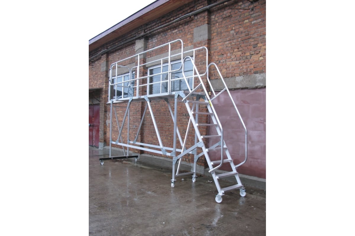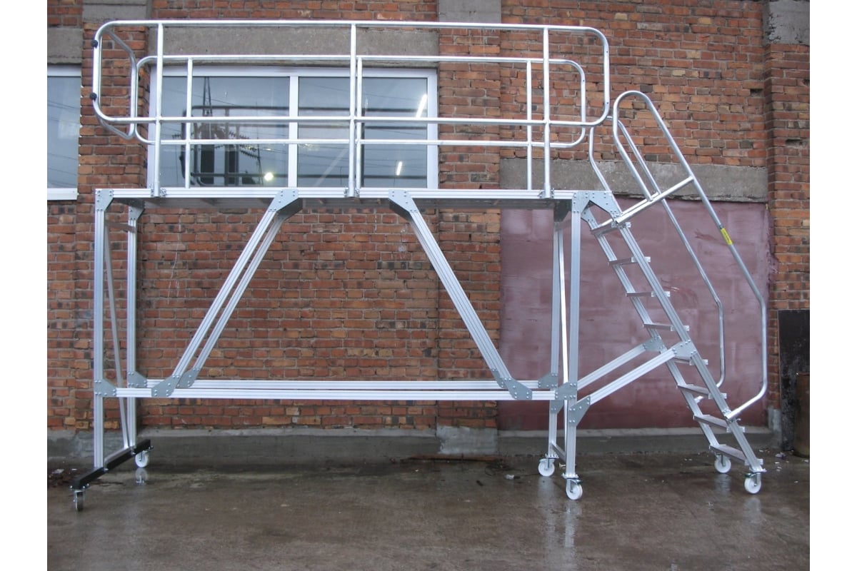 Удобная рабочая площадка из рифленого листового алюминия с ограждениями - безопасная работа