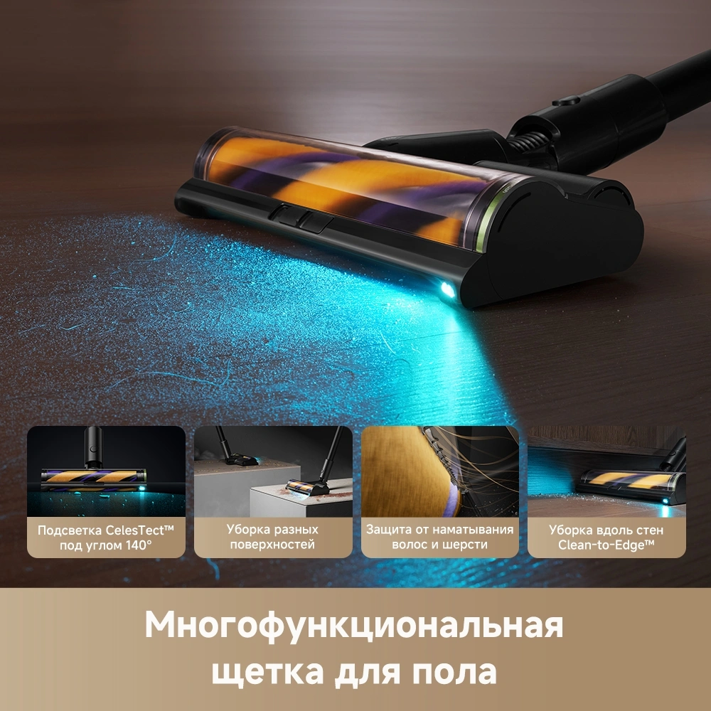 • Особенности пылесоса LED-дисплей, место для хранения насадок, напольная подставка, подсветка зоны уборки, шланг