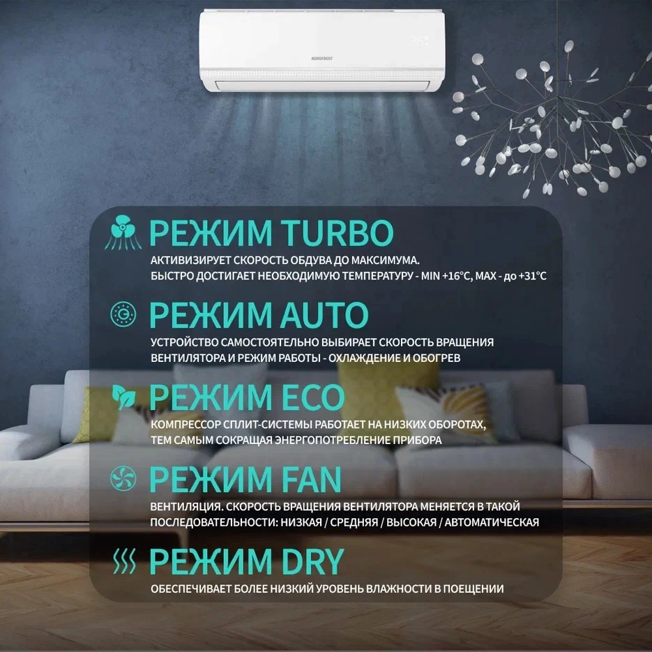 • Режимы работы охлаждение/обогрев/осушение/вентиляция