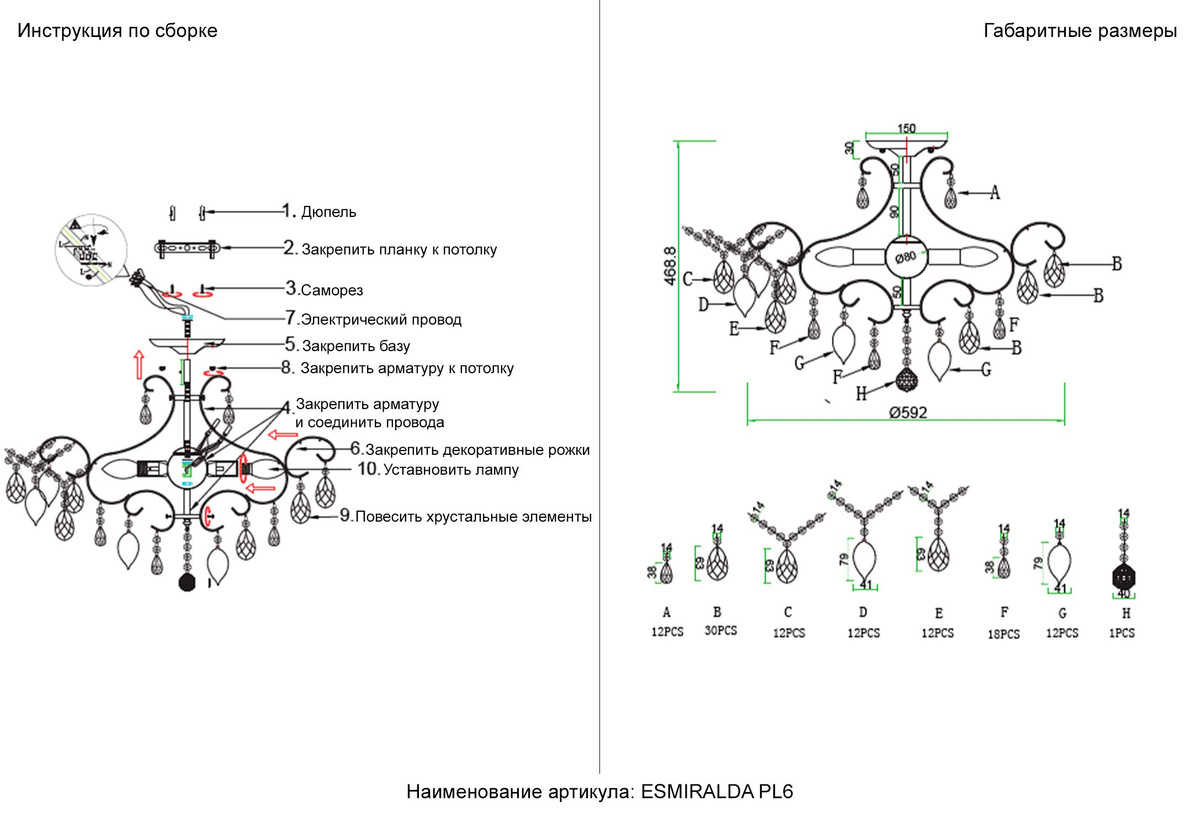 Потолочная люстра Crystal Lux ESMIRALDA PL6 SILVER