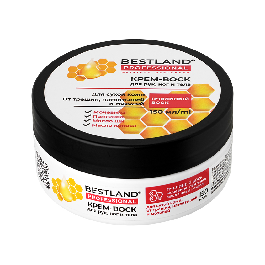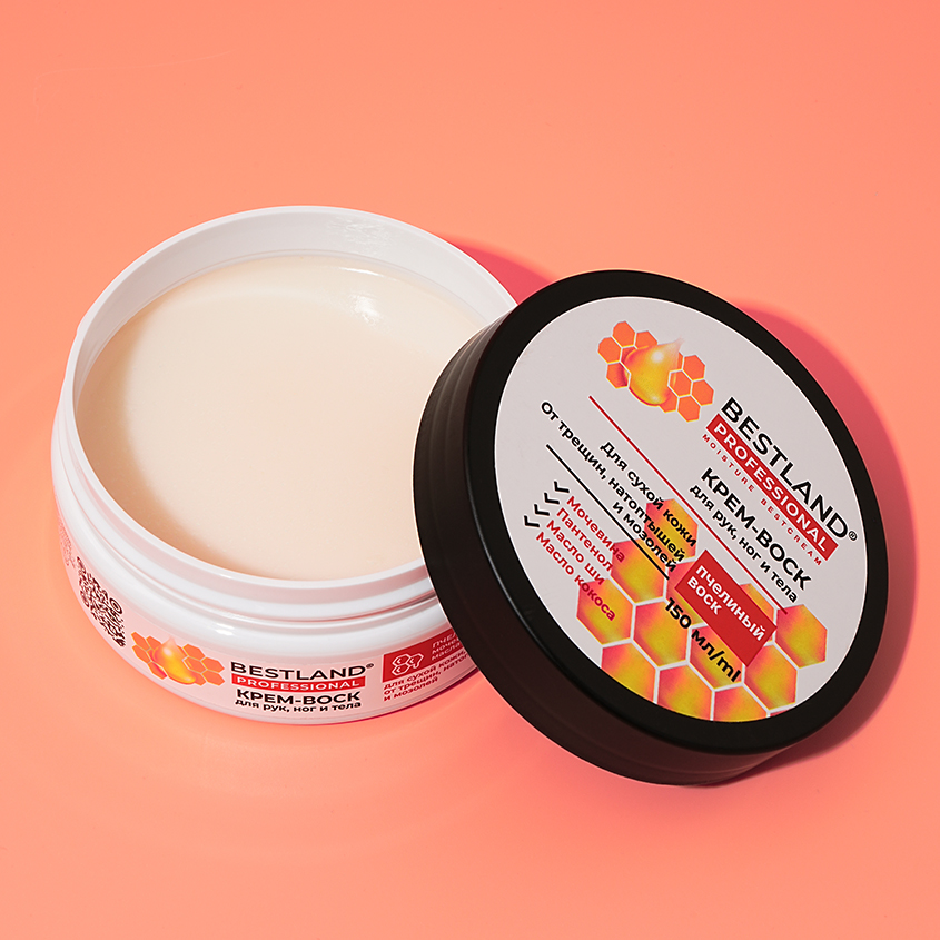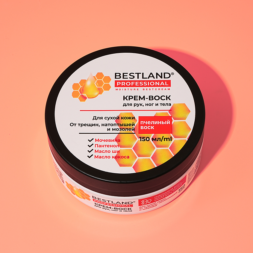 Крем-воск для рук, ног и тела `BESTLAND` пчелиный воск для сухой кожи от трещин, натоптышей и мозолей 150 мл