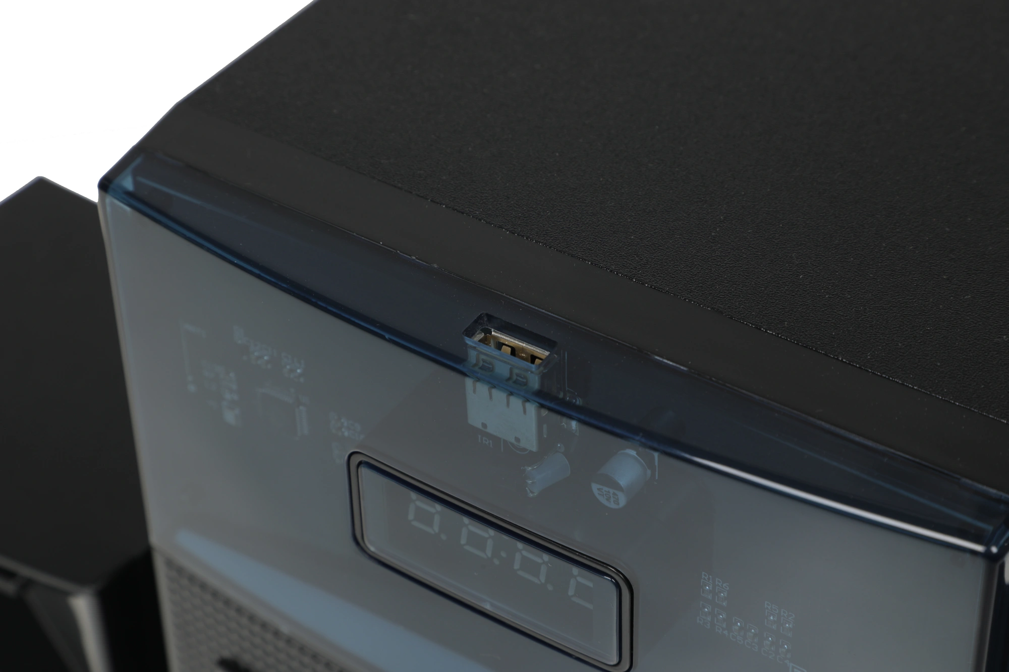 ОсобенностиМощная система 2.1 в деревянном корпусе. Bluetooth 5.3. Информационный дисплей на сабвуфере. Беспроводной пульт ДУ. Встроенный FM-приемник. Поддерживает USB накопители. Встроенный MP3-плеер. AUX-аудиовход. Подсветка сабвуфера. Эквалайзер