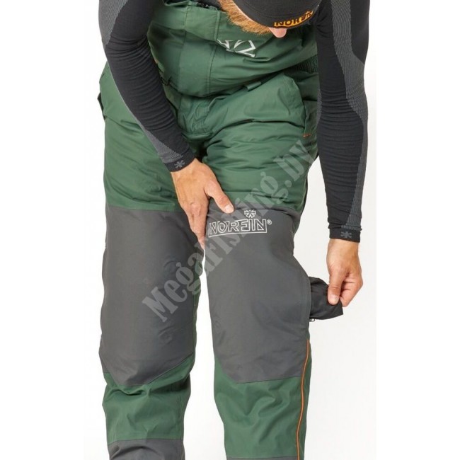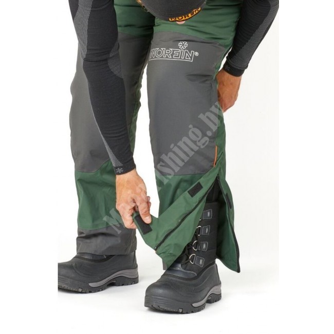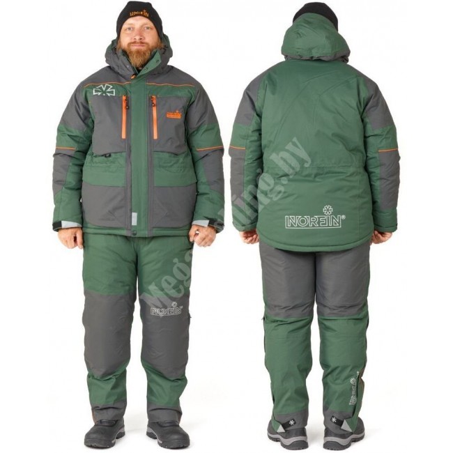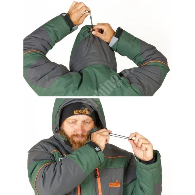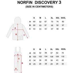 Трёхслойная мембранная ткань Nortex Breathable имеет характеристики влагозащиты 8000 и паропроводимости 6000. Костюм надёжно защищает от сильных осадков и ветра. Дополнительную надёжность обеспечивают проклеенные швы. Благодаря лёгкому и гипоаллергенному утеплителю Hollofill, костюм Norfin Discovery 3 можно использовать при экстремально-низких температурах до минус тридцати пяти градусов. Свободный крой костюма не сковывает движений, благодаря чему в нём комфортно передвигаться даже по глубокому снегу. Манжеты рукавов регулируются хлястиком с липучкой. Есть внутренняя эластичная манжета-полуперчатка, дополнительно защищающая от проникновения ветра внутрь куртки. Высокая функциональность дополняется надежностью двухзамковых молний YKK, укрытых ветрозащитной планкой на липучках. Высокий полукомбинезон, оснащён широкими эластичными подтяжками. С боков у полукомбинезона вшита резинка для более плотного облегания. Также предусмотрена широкая резинка в талии. В области коленей предусмотрены мягкие съёмные вставки. По низу брюк выполнена молния и можно легко снимать и надевать зимнюю обувь. Есть возможность отрегулировать низ штанины по объёму. В комплетке с костюмом идёт сумка для переноски и хранения.