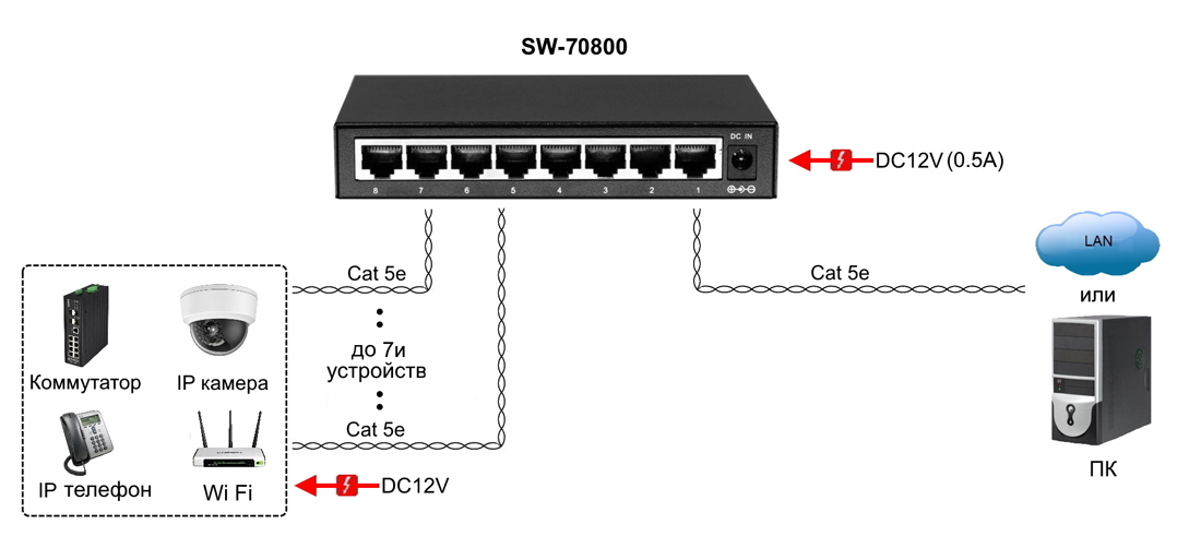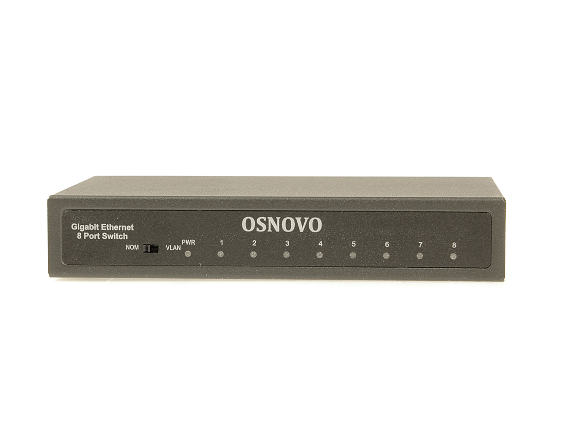 Коммутатор Gigabit Ethernet на 8 RJ45 портов. Порты: 8 x GE (10/100/1000Base-TX). Изоляция портов (VLAN). Auto MDI/MDIX Встроенная грозозащита 3кВ. В комплекте БП DC12V(1A). Размеры (ШхВхГ): 138 x 25 x 80мм. Рабочая температура: -10...+55 гр. С.