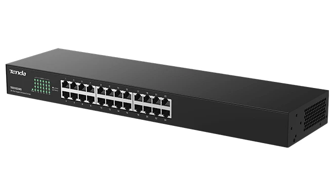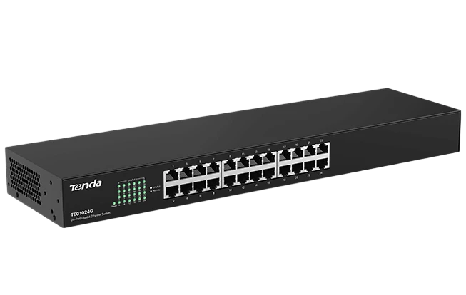 Коммутатор Tenda TEG1024G — это высокоскоростное и надёжное решение для организации стабильной проводной сети в офисе, учебном заведении, на складе или в серверной. Модель оснащена 24 гигабитными портами, что позволяет подключать большое количество сетевых устройств и обеспечить высокую пропускную способность для передачи данных без задержек.