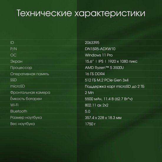 • Дополнительные характеристики накопителя M.2 2280 PCIe 3.0 x4, возможен апгрейд