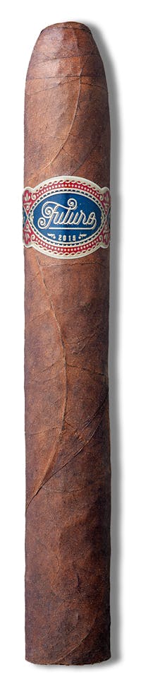 Finely constructed with a tapered head and a blunted belicoso tip, this cigar draws firmly, but shows an almond cookie sweetness with a slightly charry finish.
