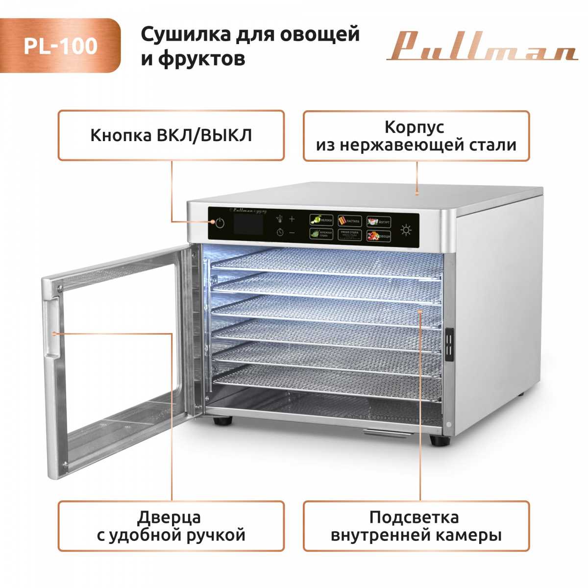 Сушилка для овощей и фруктов Pullman PL-100