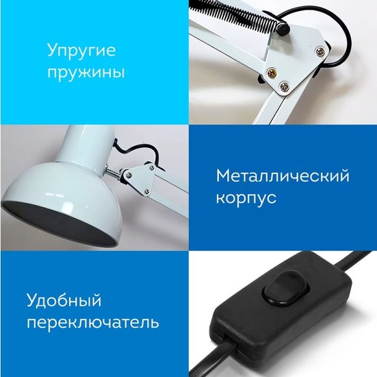✅ Настольная лампа-светильник DASWERK станет незаменимым помощником на вашем рабочем месте. Она экономит пространство и вращается на 360 градусов, позволяя направить свет под нужным углом. Идеальный выбор для школьников, студентов и мастеров салонов красоты.✅ Светильник выполнен из прочного металлического корпуса белого цвета и оснащен упругими пружинами, что обеспечивает его надежность, удобство и безопасность в использовании.✅ Широкий плафон диаметром 16,5 см обеспечивает равномерное освещение обширной рабочей зоны, не создавая теней. Конструкция позволяет легко вращать и наклонять светильник под любым углом. Благодаря струбцине, он легко крепится на рабочий стол, не занимая много места.✅ Лаконичный и стильный дизайн светильника гармонично впишется в любой интерьер дома или офиса, а также станет отличным дополнением маникюрного или косметологического салона. ⚠️ Не упустите возможность сделать ваше рабочее пространство более комфортным!✅ Настольная лампа-светильник DASWERK станет незаменимым помощником на вашем рабочем месте. Она экономит пространство и вращается на 360 градусов, позволяя направить свет под нужным углом. Идеальный выбор для школьников, студентов и мастеров салонов красоты.✅ Светильник выполнен из прочного металлического корпуса белого цвета и оснащен упругими пружинами, что обеспечивает его надежность, удобство и безопасность в использовании.✅ Широкий плафон диаметром 16,5 см обеспечивает равномерное освещение обширной рабочей зоны, не создавая теней. Конструкция позволяет легко вращать и наклонять светильник под любым углом. Благодаря струбцине, он легко крепится на рабочий стол, не занимая много места.✅ Лаконичный и стильный дизайн светильника гармонично впишется в любой интерьер дома или офиса, а также станет отличным дополнением маникюрного или косметологического салона. ⚠️ Не упустите возможность сделать ваше рабочее пространство более комфортным!
