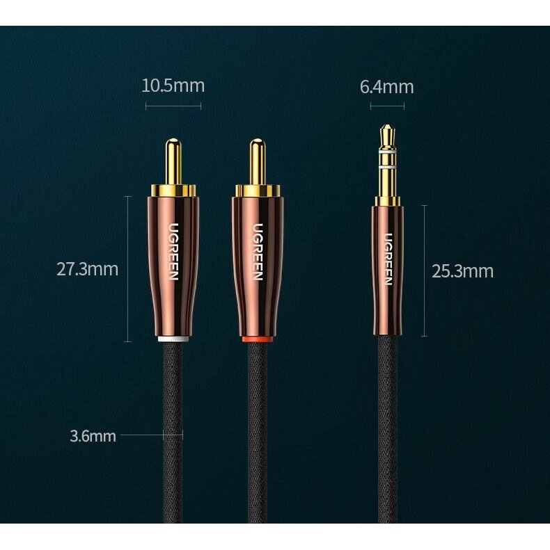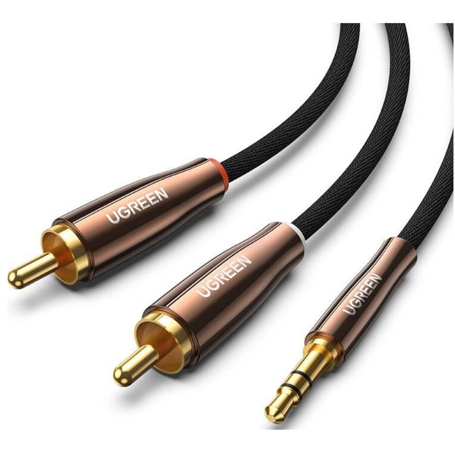Кабель UGREEN AV170 80845 3.5mm Male to 2*RCA Copper Case Braided Aux Cable 1m Black/Dark Copper