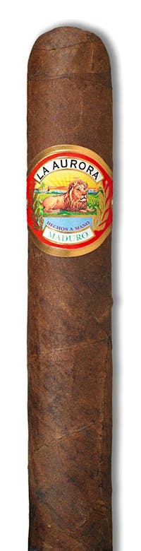 There’s a reddish tint to this dark robusto, which is hearty and rich with sweet raisins, hickory and black cherry flavor. The finish resembles a dry white wine.