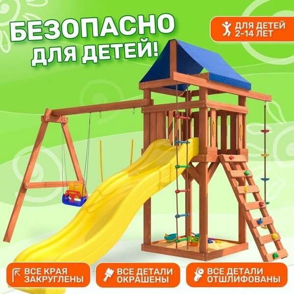 • Элементы в комплекте лестница, горка, песочница, качели, канат, лаз, веревочная лестница