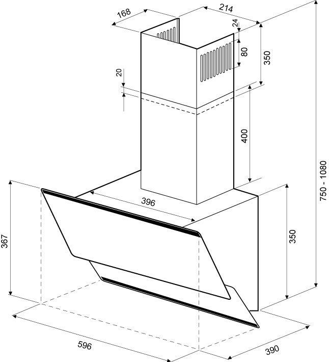 • Размеры, мм (ШхГхВ) 596x390x1080