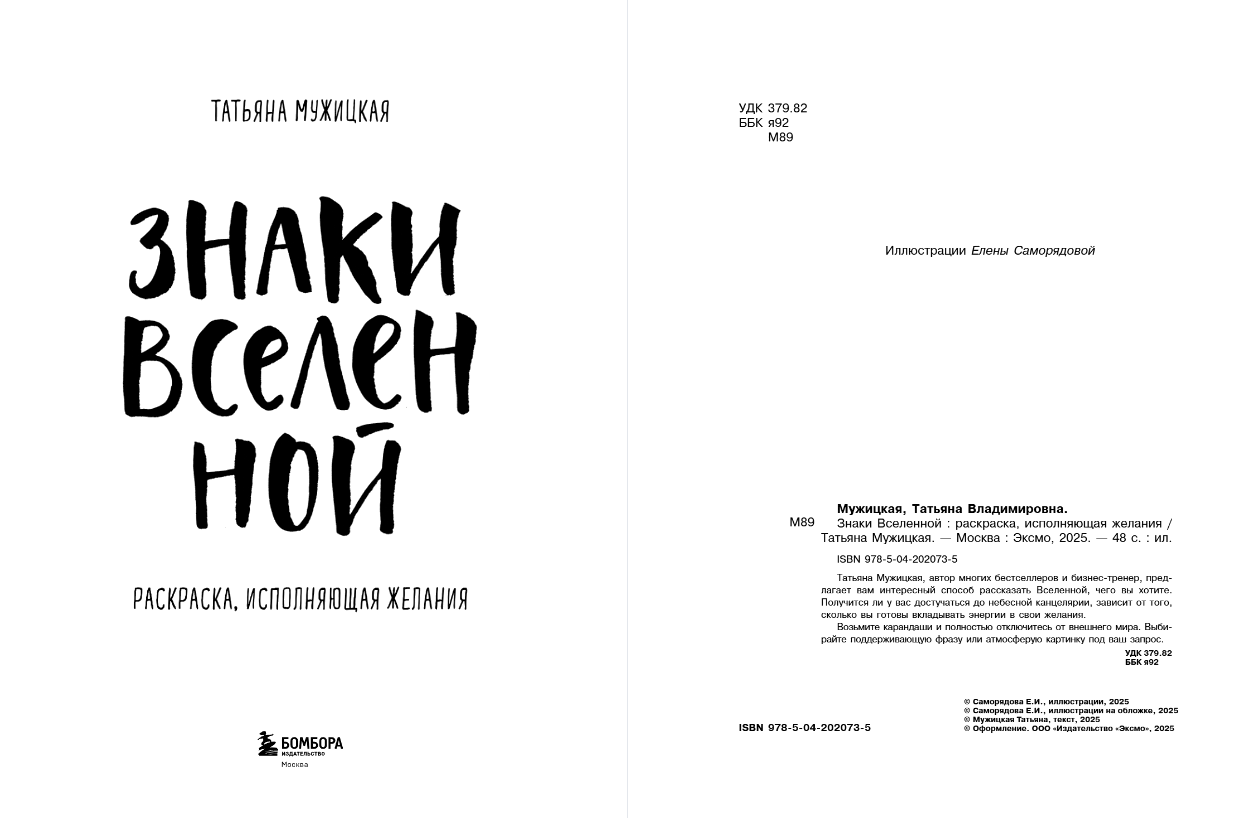 Раскраска-антистресс Бомбора Знаки Вселенной. Раскраска, исполняющая желания, мягкая обложка (Мужицкая Татьяна)