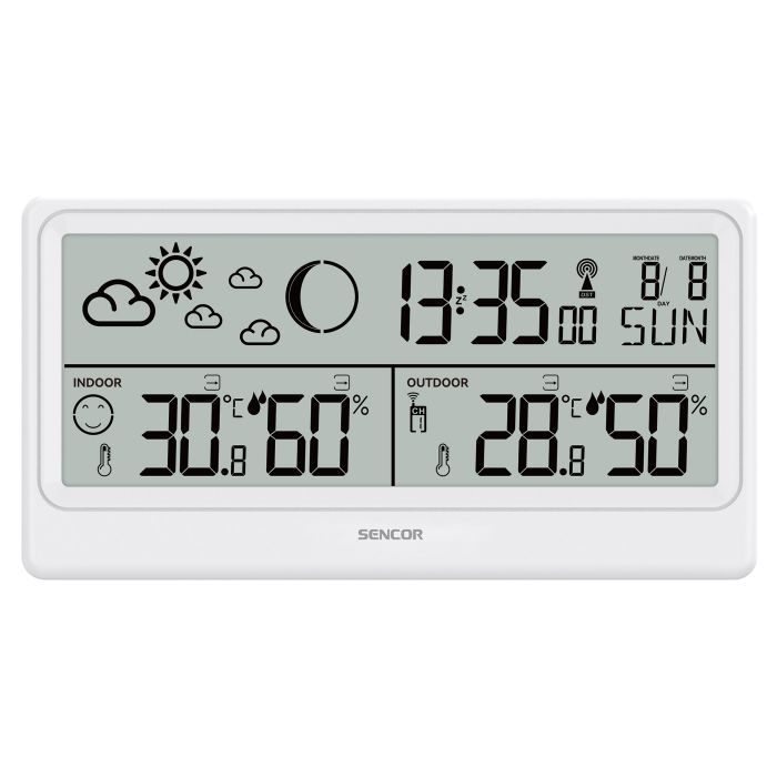 Додаткові характеристикипрогноз погоди , попередження про ризик цвілі (3 рівні) , сповіщення про високу/низьку зовнішню температуру , попередження про мороз для зовнішнього каналу , подвійна сигналізація , функція відкладення , автоматичне прокручування виміряних даних , індикація рівня комфорту (5 рівнів) , індикатор низького заряду батареї , зовнішня температура та вологість , температура та вологість у приміщенні , цифровий час, дата та день тижня , годинник , підтримує до 3 датчиків , можливість вибору 12- чи 24-часового формату , фази місяця , відображення температури з °c/°f за вибором