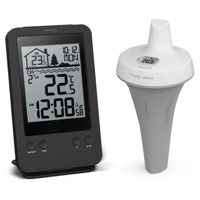 Додаткові характеристикибудильник та повтор , записи макс./мін. значень (12 год) , сигнал про замерзання для зовнішнього каналу , показник температури води на вулиці , показник температури в приміщенні , день тижня , цифровий час, дата та день тижня , можливість вибору 12- чи 24-часового формату