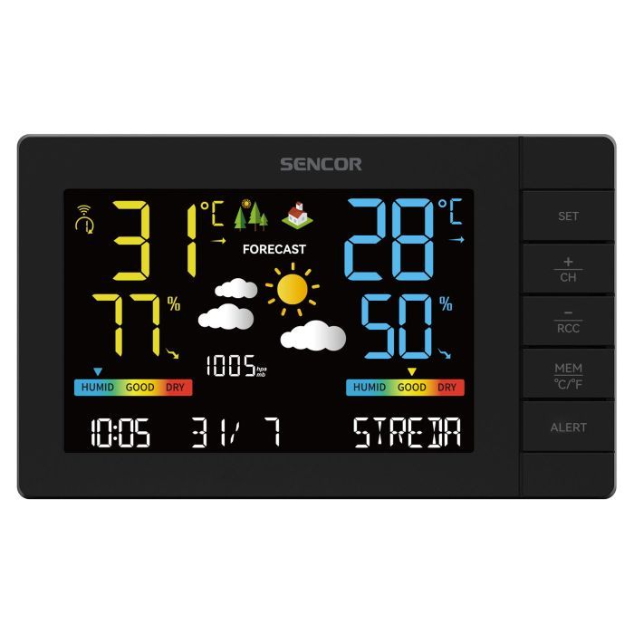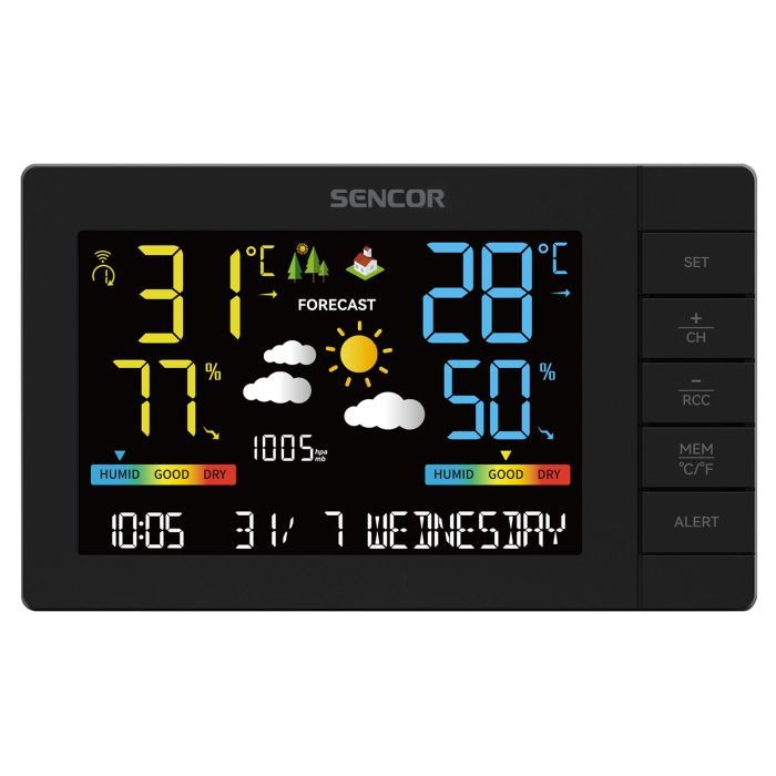 Метео вимірюваннявнутрішня вологість , внутрішня температура , зовнішня температура , зовнішня вологість , прогноз погоди , опади
