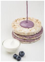 - Состав коричневый рис 40%, покрытие из глазури со вкусом йогурта и черники 60%: сахар, какао-масло, сухое молоко, йогурт, порошок обезжиренного йогурта 4%, эмульгатор: соевый лецитин, натуральный ароматизатор черничный 0,6%, натуральный ароматизатор ванили, концентрат фруктов и овощей с красящими свойствами, 0,2%: тыква, редис, помидор, яблоко в переменной пропорции