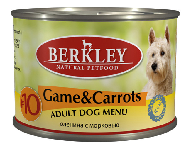 - Ингредиенты дичь 68%, бульон 27,5%, морковь 3%, оливковое масло 0,5%.
