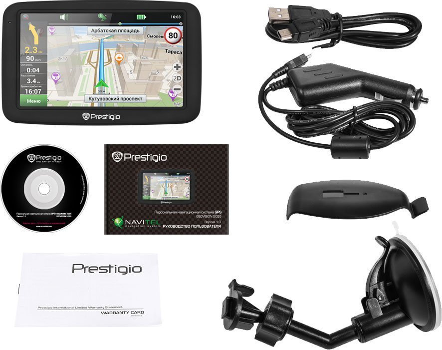 - Комплектация навигатор, автомобильный адаптер питания, крепление на стекло, USB-кабель