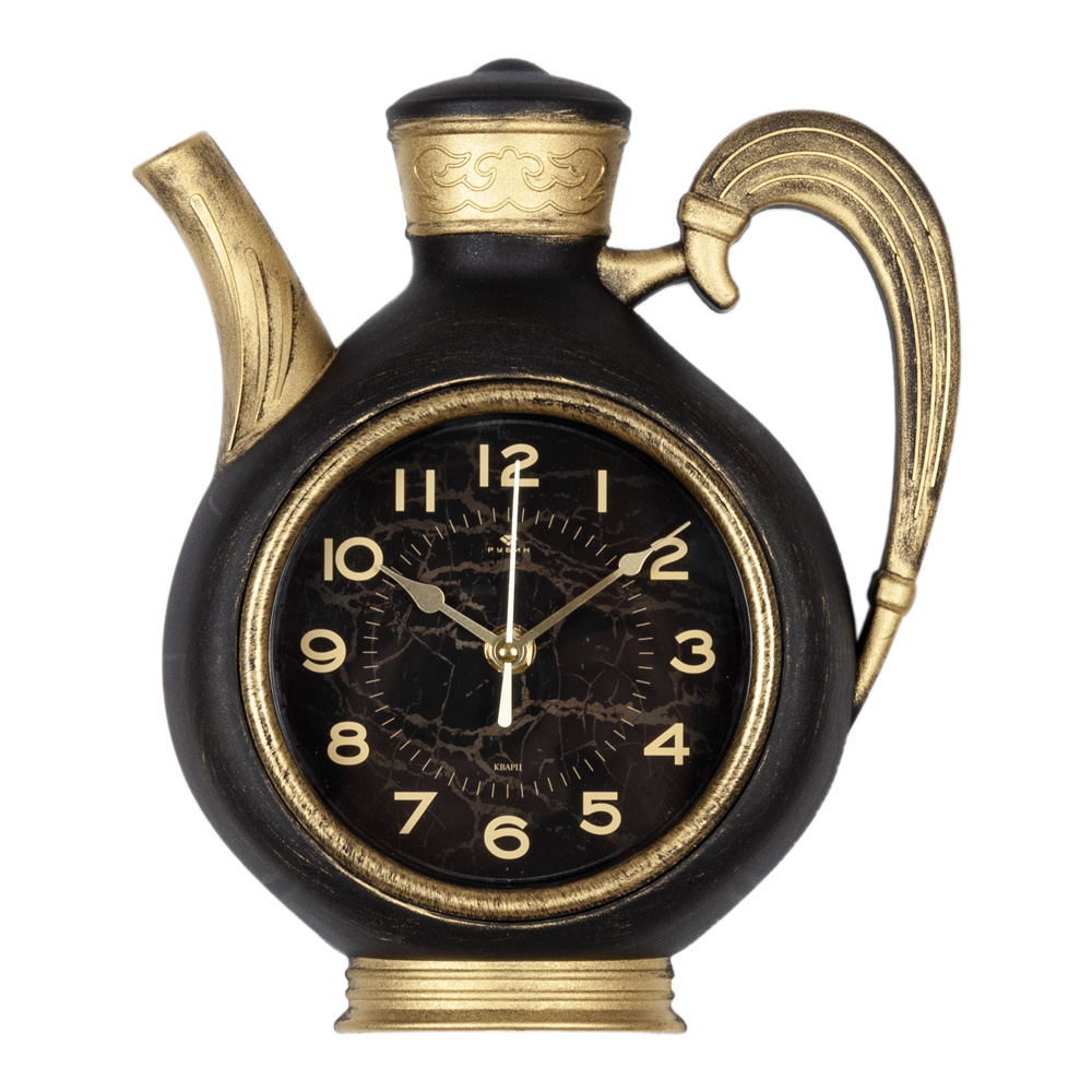 Часы настенные "Рубин" чайник, 26,5х24см, корпус черный с золотом "Gold"