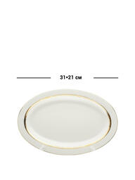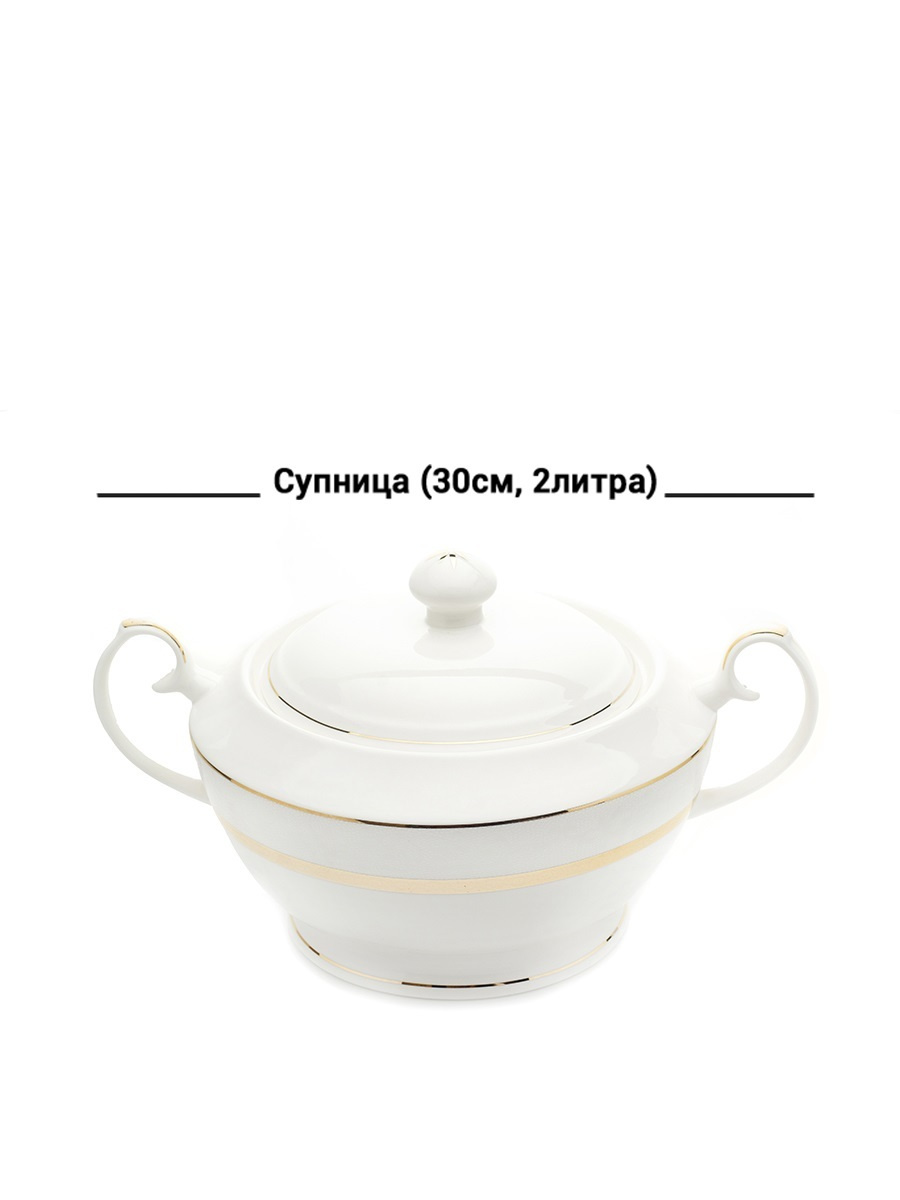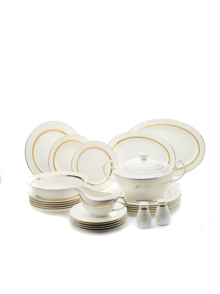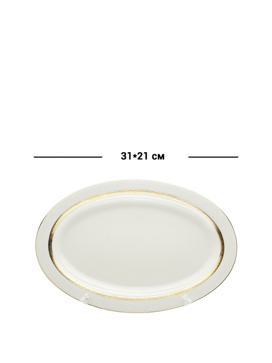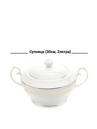 • Комплектация Тарелка подстановочная (27 см) - 6 шт,Тарелка закусочная (20 см) - 6 шт,Тарелка глубокая (22 см) - 6 шт,Супница(30см,2литра)-1шт,Блюдо овальное большое (36*24,5 см) - 1 шт,Блюдо овальное малое (31*21 см) - 1 шт, Салатник большой (23 см) - 1 шт,Соусник - 1 шт(18см,300мл),Солонка - 1 шт(8,5см),Перечница - 1шт(8,5см)