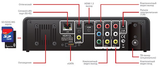 рекордер, 1 Тб, 1080p (Full HD), HDMI 1.3, eSATA, Ethernet, BitTorrent-клиент, MKV, H.264, AVCHD, DivX, XviD, FLAC, SD, SDHC, Memory Stick, чипсет: Realtek RTD1283DD.