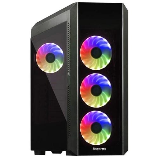 Среднеразмерный черный корпус Chieftec SCORPION III [GL-03B-OP] дополнен разноцветной подсветкой, которую видно через стеклянную фронтальную панель. Источником ее являются предустановленные вентиляторы.
