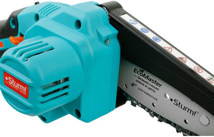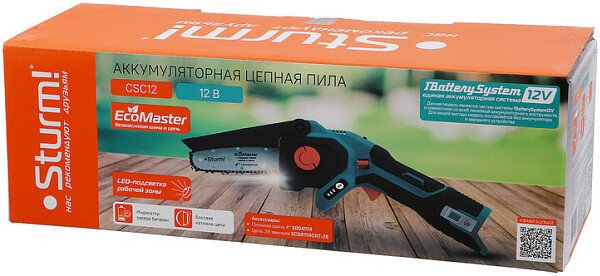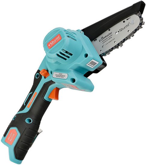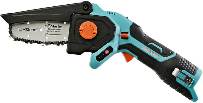 Аккумуляторная пила CSC12 Sturm! Предназначена для бытового использования. Данная модель обладает повышенной мобильностью, так как может использоваться вне зависимости от источников питания. Идеально подходит для работы в саду при уходе за растущими деревьями, распила и обрезания веток деревьев, а также справится с простыми столярными работами. Главной особенностью цепной пилы является наличие безмасляной пильной гарнитуры. Это гарантирует немало преимуществ: пила не нуждается в заправке маслом и, как следствие, в постоянном контроле его уровня, исключается необходимость регулярной прочистки маслоподающего канала от опилок, инструмент не оставляет масляные пятна при транспортировке или хранении. Откидной защитный кожух делает работу с пилой безопасной. При необходимости можно задействовать всю длину шины, кожух откидывается под углом 90°. Прорезиненная рукоятка обеспечивает надежный хват.Аккумуляторная пила CSC12 Sturm! Предназначена для бытового использования. Данная модель обладает повышенной мобильностью, так как может использоваться вне зависимости от источников питания. Идеально подходит для работы в саду при уходе за растущими деревьями, распила и обрезания веток деревьев, а также справится с простыми столярными работами. Главной особенностью цепной пилы является наличие безмасляной пильной гарнитуры. Это гарантирует немало преимуществ: пила не нуждается в заправке маслом и, как следствие, в постоянном контроле его уровня, исключается необходимость регулярной прочистки маслоподающего канала от опилок, инструмент не оставляет масляные пятна при транспортировке или хранении. Откидной защитный кожух делает работу с пилой безопасной. При необходимости можно задействовать всю длину шины, кожух откидывается под углом 90°. Прорезиненная рукоятка обеспечивает надежный хват.