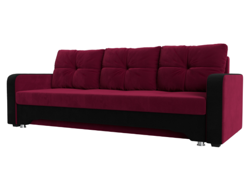 Диван-кровать Ник-3 Бордовый / Черный микровельвет