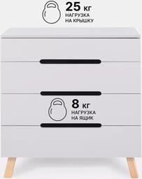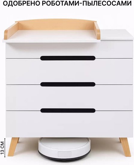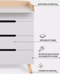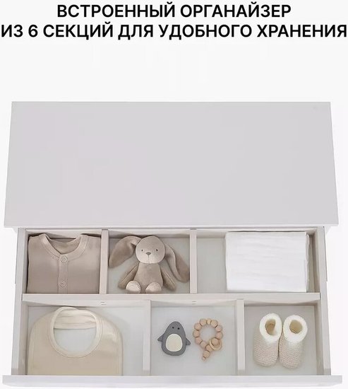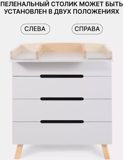 Что особенного в этом комоде:в этом же стиле выполнены кроватки из коллекции Rant, одна из которых составит подходящую пару комодикувместительные выдвижные ящики (4 шт.) бесшумны - они не потревожат спящего малышак тому же ящики дополнены специальными телескопическими направляющими, благодаря которым комод способен выдерживать большие нагрузки на протяжении длительного временитакже ящики снабжены удобными выпилами - вам не надо будет подкручивать разболтавшуюся фурнитуруверхний ящик комода поделен на 6 разноформатных секций, куда так удобно сложить все необходимые вещи для ухода за младенцем (подгузники, одноразовые пеленки, детскую косметику для тела)конечно же, комодик имеет бортик, превращающий его в полноценный пеленальный столик. Более того, можно менять положение пеленального бортика, устанавливая его правее или левее на поверхности комода.когда малыш подрастёт, бортик можно будет снятьфасады комода изготовлены из высококачественных и экологически чистых МДФ-панелейкомод обработан безопасными для здоровья новорожденного красками на водной основеДорогие родители, помните, что малыша нельзя оставлять одного на пеленальном комоде!Что особенного в этом комоде:в этом же стиле выполнены кроватки из коллекции Rant, одна из которых составит подходящую пару комодикувместительные выдвижные ящики (4 шт.) бесшумны - они не потревожат спящего малышак тому же ящики дополнены специальными телескопическими направляющими, благодаря которым комод способен выдерживать большие нагрузки на протяжении длительного временитакже ящики снабжены удобными выпилами - вам не надо будет подкручивать разболтавшуюся фурнитуруверхний ящик комода поделен на 6 разноформатных секций, куда так удобно сложить все необходимые вещи для ухода за младенцем (подгузники, одноразовые пеленки, детскую косметику для тела)конечно же, комодик имеет бортик, превращающий его в полноценный пеленальный столик. Более того, можно менять положение пеленального бортика, устанавливая его правее или левее на поверхности комода.когда малыш подрастёт, бортик можно будет снятьфасады комода изготовлены из высококачественных и экологически чистых МДФ-панелейкомод обработан безопасными для здоровья новорожденного красками на водной основеДорогие родители, помните, что малыша нельзя оставлять одного на пеленальном комоде!