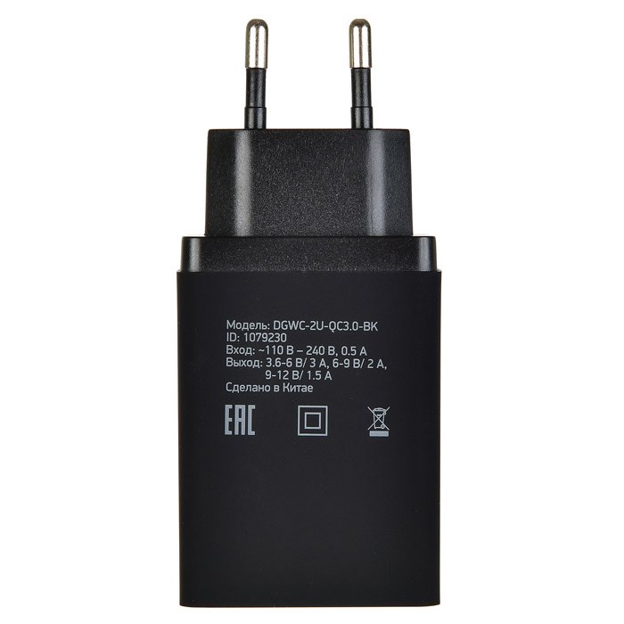 СЗУ Digma DGWC-2U-QC3.0-BK 3A QC черный