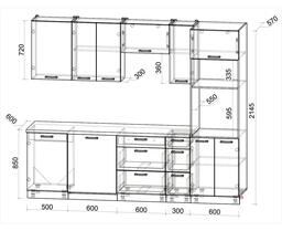 - Глубина нижних шкафов (по столешнице) 600 мм