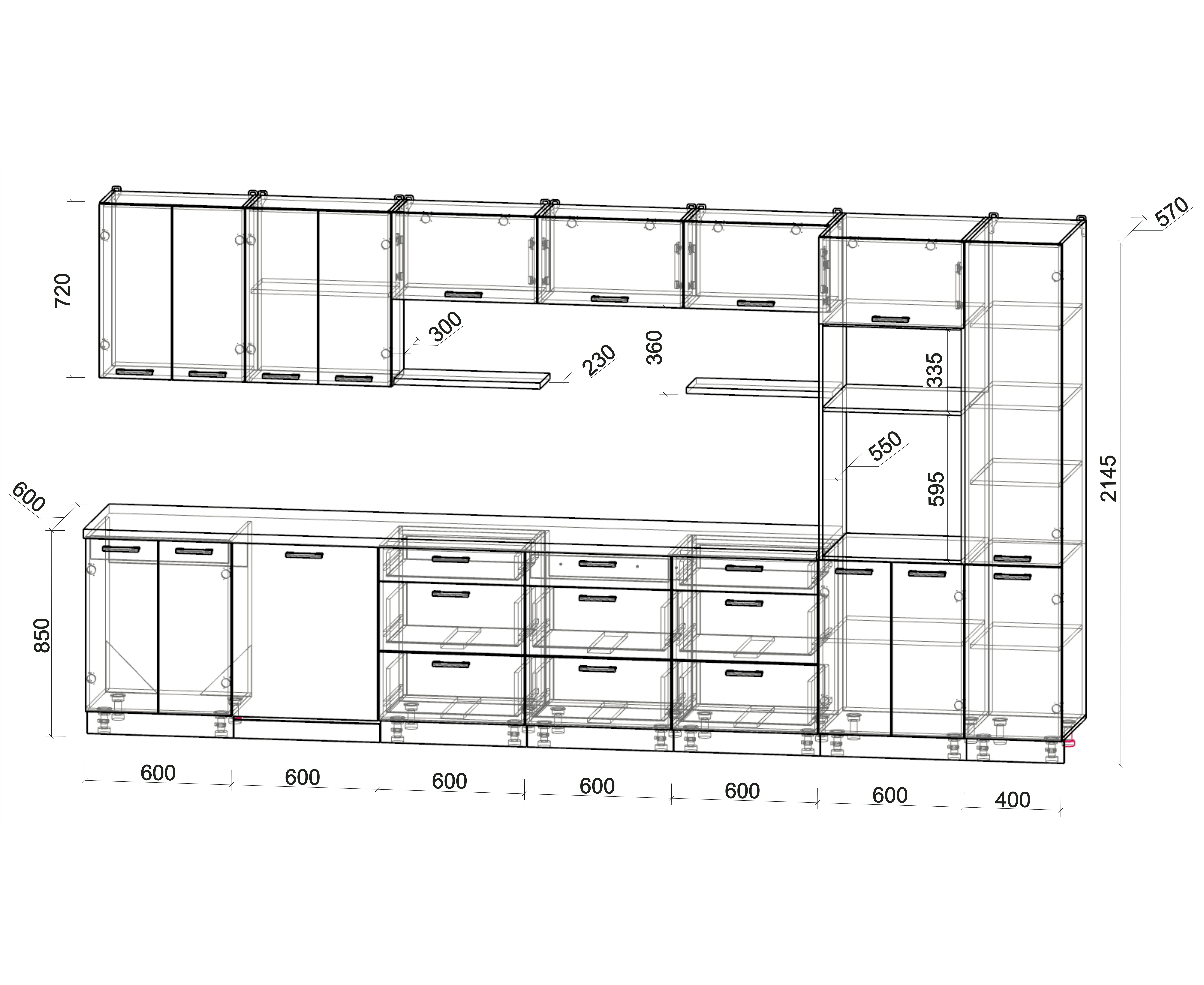 - Высота верхних шкафов 720 мм