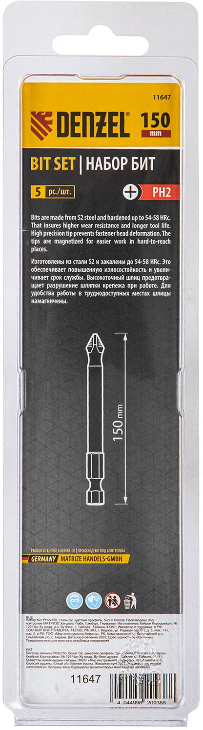 • Состав набора Набор бит PH2х150, сталь S2, круглый профиль, 5шт.