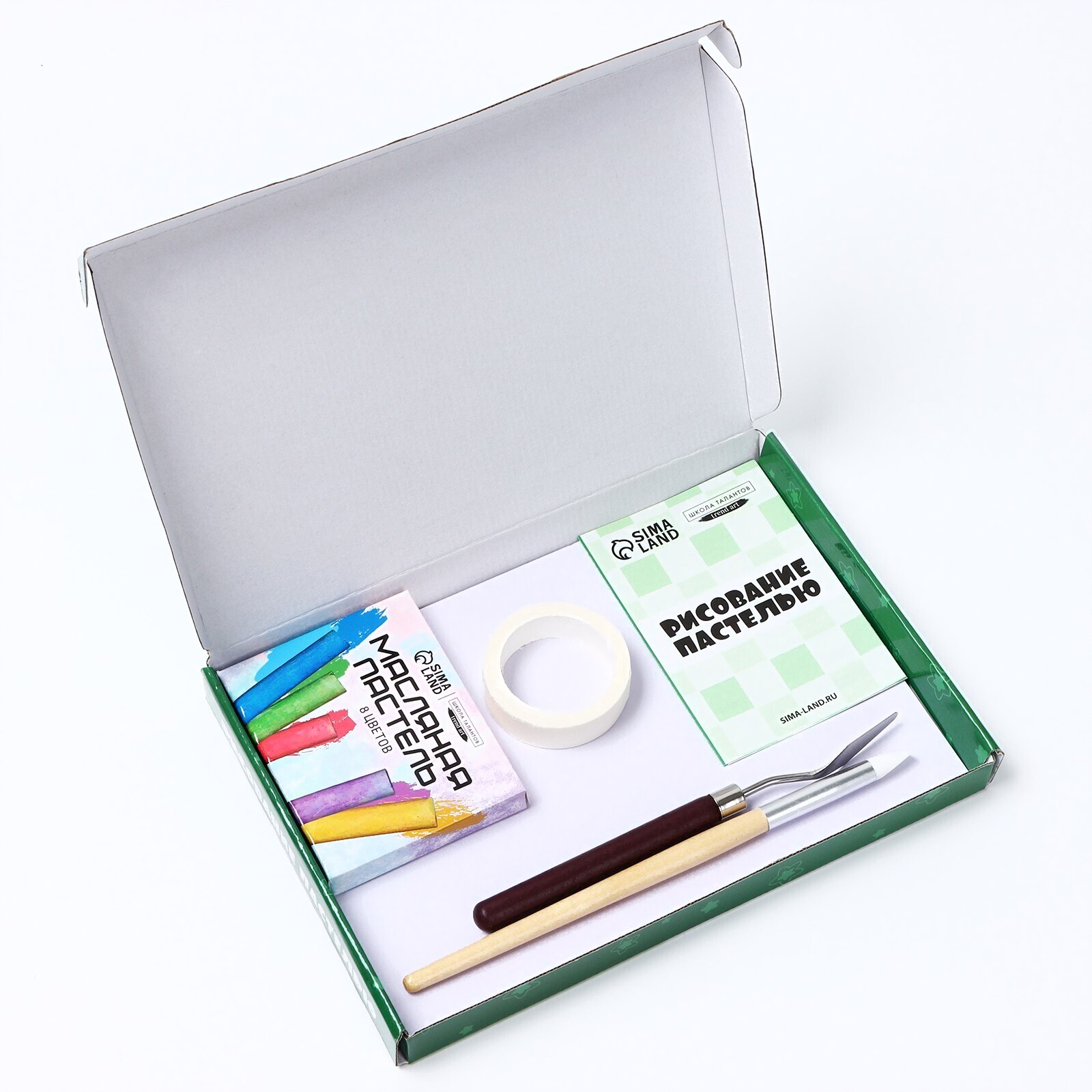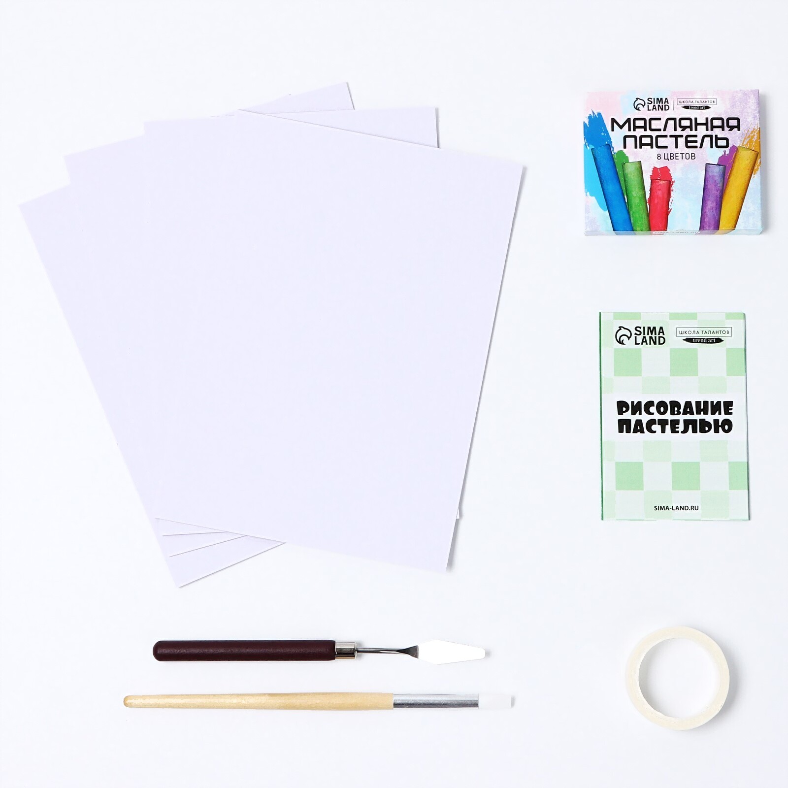 • Наполнение пастельные мелки, набор белой бумаги, кисть, мастихин, скотч