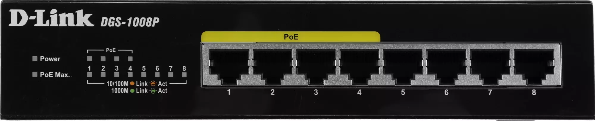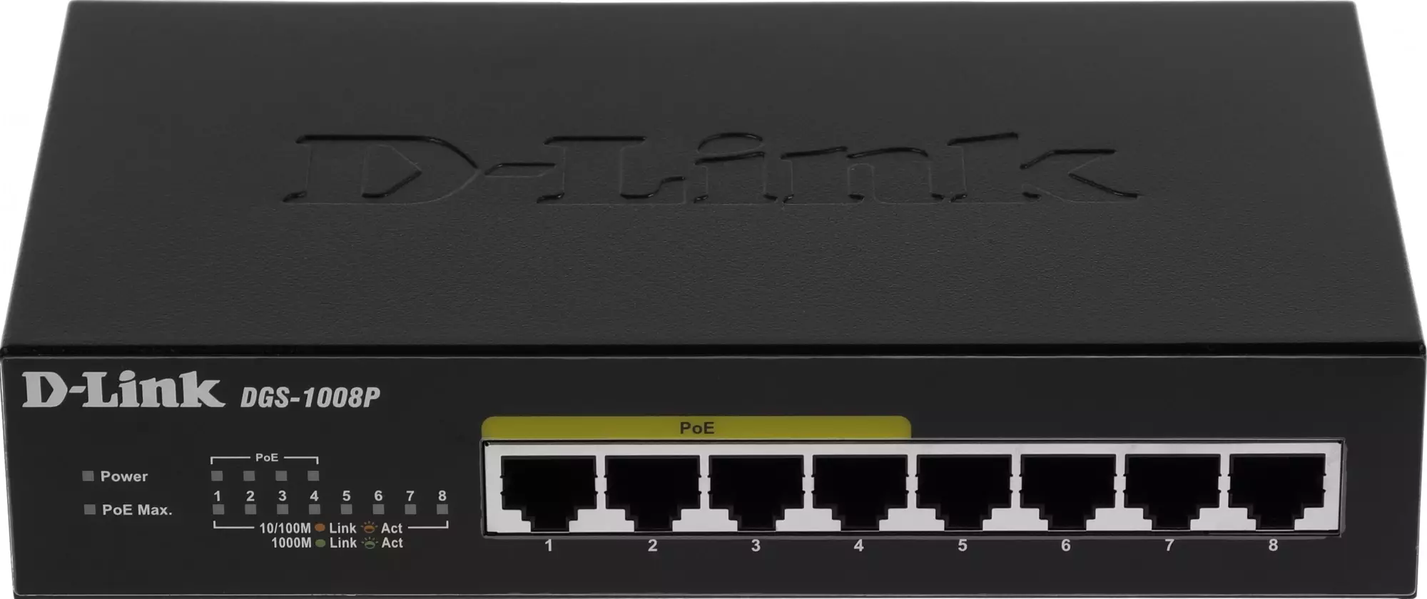 Коммутатор неуправляемый D-Link DGS-1008P/E1A