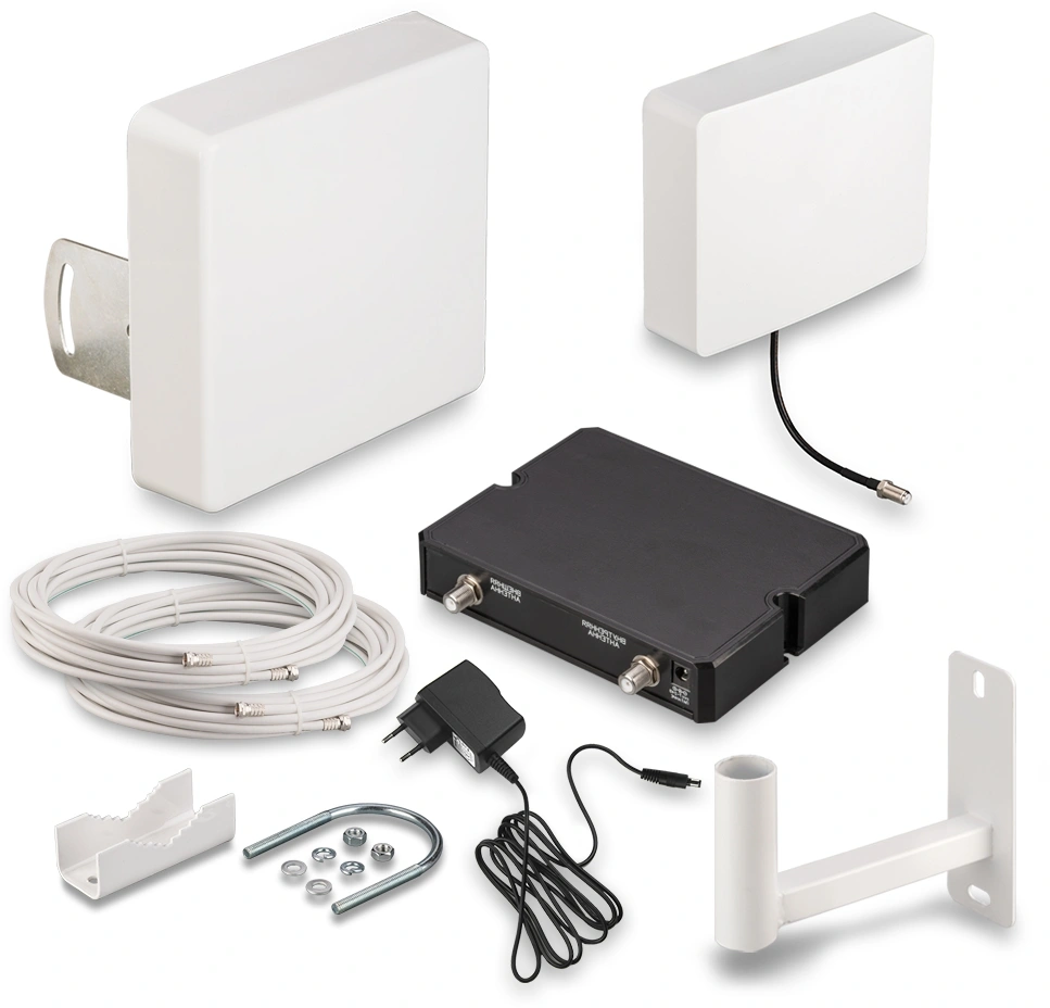 ОсобенностиКомплект LTE1800/2600, GSM1800, UMTS2100. Покрытие до 100 м2. Подходит для всех мобильных операторов РФ (МТС, Билайн, Мегафон, Tele2 и т.д.). Комплектуется внешней широкополосной антенной KP15-750/2900 усилением 15 дБ и внутренней настенной антенной KP10-900/2700W усилением 10 дБ.