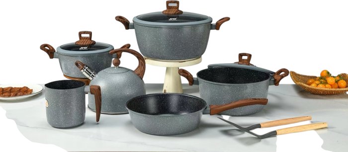 - ✅ Набор кухонной посуды JIO JIO-013 станет незаменимым помощником на вашей кухне. Он включает в себя все необходимое для приготовления разнообразных блюд: сковороду, кастрюли, ковш и чайник. Благодаря антипригарному покрытию, вы сможете готовить с минимальным количеством масла, что сделает ваши блюда более полезными и вкусными.✅ Каждая деталь набора разработана с учетом современных требований к качеству и удобству. Стеклянные крышки с накладками для слива обеспечивают легкий доступ к вашим кулинарным шедеврам, а возможность использования на газовой и электрической плитах делает этот набор универсальным.✅ Изготовленный из алюминия, набор отличается легкостью и прочностью. Он легко моется в посудомоечной машине, что сэкономит ваше время на уборку после готовки. С набором JIO JIO-013 вы сможете не только готовить, но и наслаждаться процессом!⚠️ Обратите внимание, что съемные ручки отсутствуют, что делает посуду более надежной в использовании. Этот набор идеально подойдет как для опытных кулинаров, так и для начинающих, желающих освоить искусство приготовления пищи. ✅ Не упустите возможность обновить свою кухонную утварь и сделать процесс готовки более комфортным и приятным! ✅ Набор кухонной посуды JIO JIO-013 станет незаменимым помощником на вашей кухне. Он включает в себя все необходимое для приготовления разнообразных блюд: сковороду, кастрюли, ковш и чайник. Благодаря антипригарному покрытию, вы сможете готовить с минимальным количеством масла, что сделает ваши блюда более полезными и вкусными.✅ Каждая деталь набора разработана с учетом современных требований к качеству и удобству. Стеклянные крышки с накладками для слива обеспечивают легкий доступ к вашим кулинарным шедеврам, а возможность использования на газовой и электрической плитах делает этот набор универсальным.✅ Изготовленный из алюминия, набор отличается легкостью и прочностью. Он легко моется в посудомоечной машине, что сэкономит ваше время на уборку после готовки. С набором JIO JIO-013 вы сможете не только готовить, но и наслаждаться процессом!⚠️ Обратите внимание, что съемные ручки отсутствуют, что делает посуду более надежной в использовании. Этот набор идеально подойдет как для опытных кулинаров, так и для начинающих, желающих освоить искусство приготовления пищи. ✅ Не упустите возможность обновить свою кухонную утварь и сделать процесс готовки более комфортным и приятным!