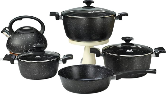 - ✅ Набор кухонной посуды JIO JIO-008 — это идеальное решение для каждой хозяйки, стремящейся к удобству и качеству на кухне. В комплект входят сковорода, три кастрюли с крышками и чайник, что делает его универсальным помощником для приготовления разнообразных блюд.✅ Изготовленный из алюминия, этот набор обеспечивает равномерное распределение тепла, что позволяет готовить быстро и эффективно. Антипригарное покрытие гарантирует легкость в использовании и уходе, а также предотвращает пригорание пищи.✅ Крышки из стекла позволяют следить за процессом приготовления без необходимости открывать кастрюли, сохраняя тепло и ароматы внутри. Этот набор подходит для использования на газовых и электрических плитах, что делает его универсальным для любой кухни.⚠️ Не забывайте, что посуду можно мыть в посудомоечной машине, что значительно упрощает процесс уборки после готовки. ✅ Набор JIO JIO-008 станет отличным дополнением к вашей кухне, обеспечивая комфорт и стиль в каждом приготовлении. Создавайте кулинарные шедевры с легкостью и удовольствием! ✅ Набор кухонной посуды JIO JIO-008 — это идеальное решение для каждой хозяйки, стремящейся к удобству и качеству на кухне. В комплект входят сковорода, три кастрюли с крышками и чайник, что делает его универсальным помощником для приготовления разнообразных блюд.✅ Изготовленный из алюминия, этот набор обеспечивает равномерное распределение тепла, что позволяет готовить быстро и эффективно. Антипригарное покрытие гарантирует легкость в использовании и уходе, а также предотвращает пригорание пищи.✅ Крышки из стекла позволяют следить за процессом приготовления без необходимости открывать кастрюли, сохраняя тепло и ароматы внутри. Этот набор подходит для использования на газовых и электрических плитах, что делает его универсальным для любой кухни.⚠️ Не забывайте, что посуду можно мыть в посудомоечной машине, что значительно упрощает процесс уборки после готовки. ✅ Набор JIO JIO-008 станет отличным дополнением к вашей кухне, обеспечивая комфорт и стиль в каждом приготовлении. Создавайте кулинарные шедевры с легкостью и удовольствием!