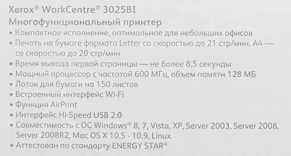 • Время выхода первой страницы в черно-белом режиме 8.5 c