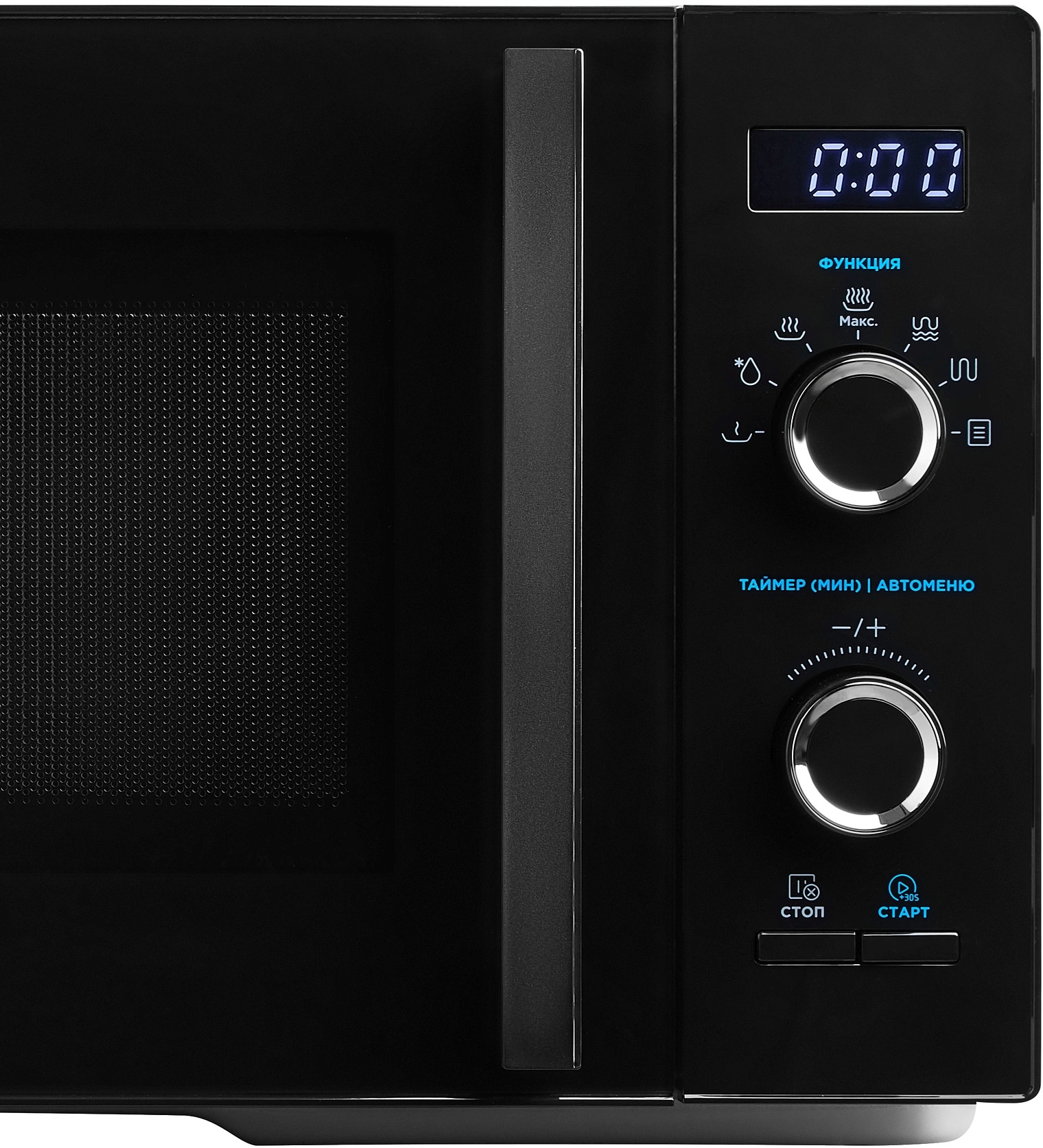 • Управление кнопка +30 секунд, регулировка мощности